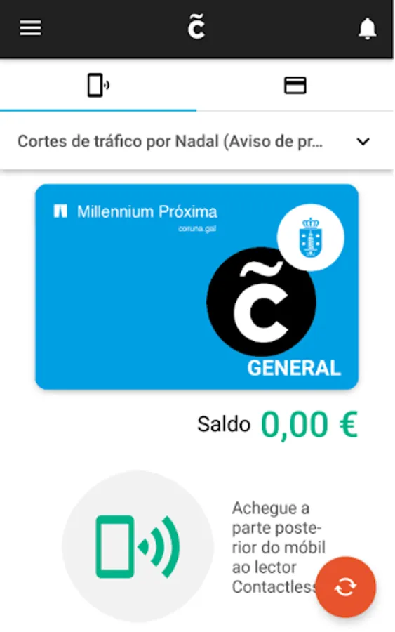 Anyone, resident or not in A Coruña, can have the Millennium Próxima on their mobile phone without having to go to the municipal offices, and can recharge it without going through a cashier.