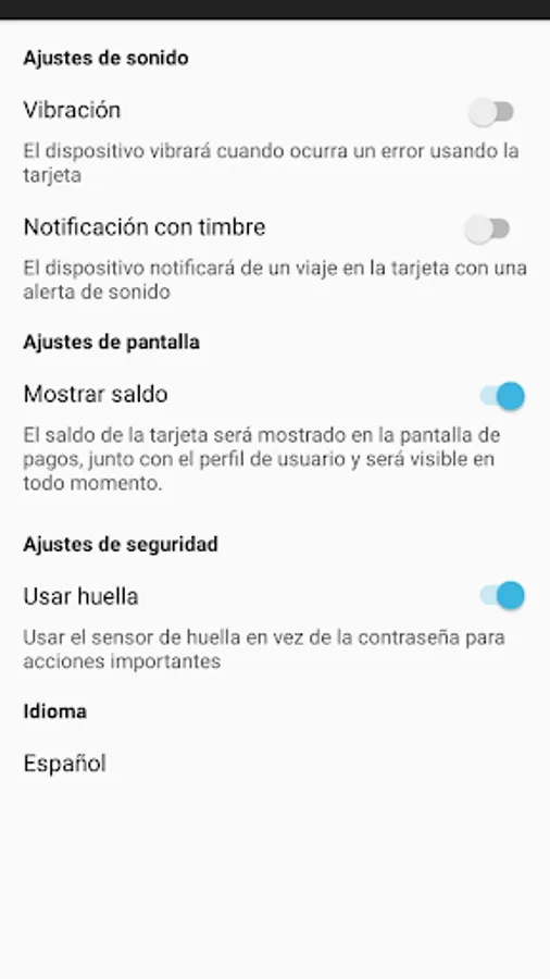 Through this application, the user can check the status of their wallet in the application, top up the balance, manage their profile, top up pending payments (as in the case of those users of the flat rate, for example), or check the history of travel
