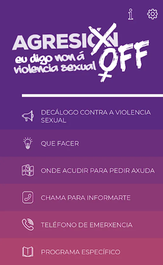 This is an institutional App, from the Xunta de Galicia, with useful information and advice to avoid and prevent sexual assault, as well as guidelines to know where to go for more support and information.