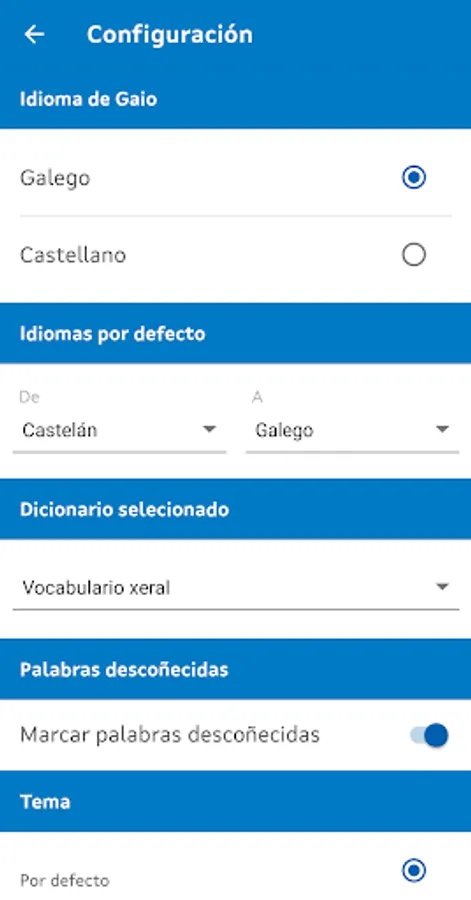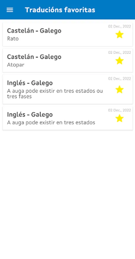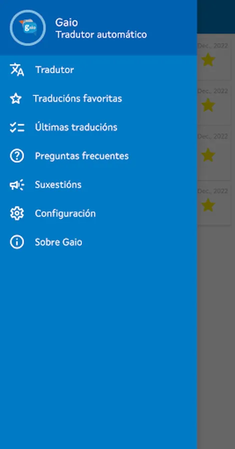 Mobile application that allows automatic translation of texts from galician, Spanish, Portuguese, English and Catalan.