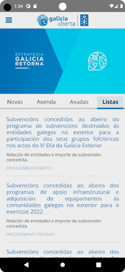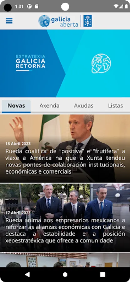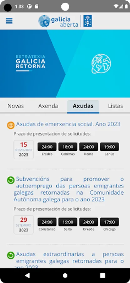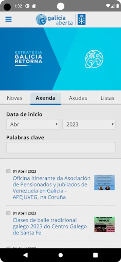 With this application may enroll in the events organized and / or participated by the Secretary General of Emigration of the Xunta de Galicia, as well as receive updates from them. Also, the access to the contents of current interest to / as emigrants, returning emigrants / centers and the Galicians abroad.