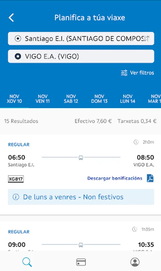 If you are a frequent user of metropolitan transport (make at least 41 trips per month), if you are entitled to social bonuses or have the Xente Nova card, this APP will also allow you to register your public transport cards, see the refund summary performed and receive notifications of your top-ups on your mobile device.