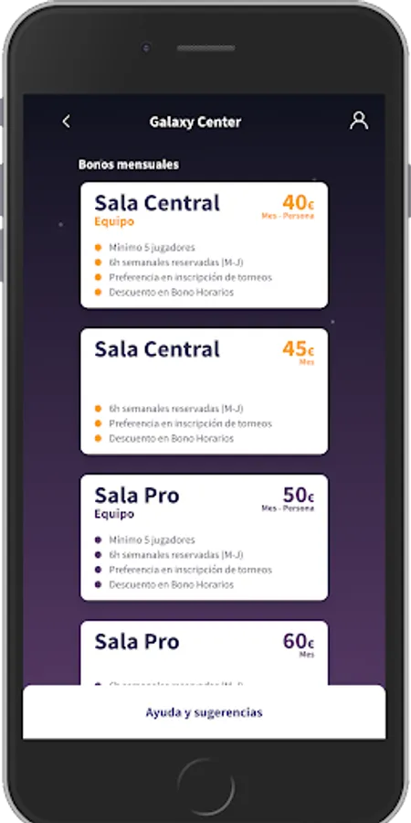 In our app you can consult data about the center and you can also manage everything related to your monthly bonus.