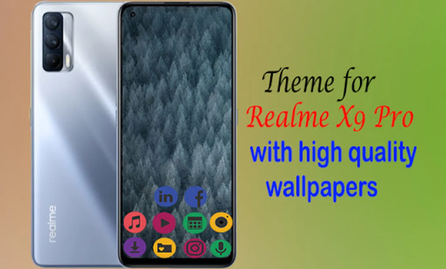 Theme for Realme X9 Pro is an app where you will find many beautiful wallpapers which can be set on all launcher supported by the phone, Theme for Realme X9 Pro has an icon pack as well so if you would like to change icons along with the wallpapers it can be done right inside of the app very intuitively, without any hassle,