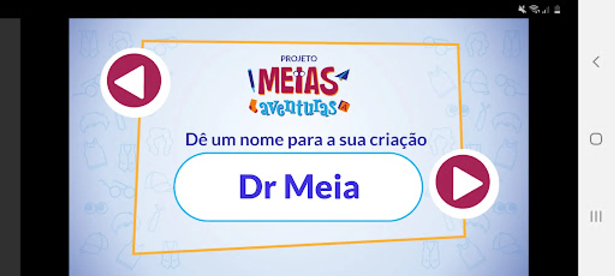 In the game Galeria do Meia, from the Meias Aventuras project, each child can create versions of the character with different hairstyles, accessories and clothes according to their creativity. The game is part of a set of fun proposals used to provide the cognitive, social and emotional development of each child.