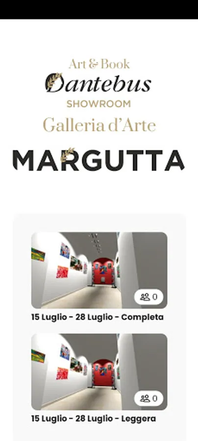 A faithful reproduction of the Dantebus Margutta Showroom in via Margutta 38 in Rome with the works on display updated in real time.