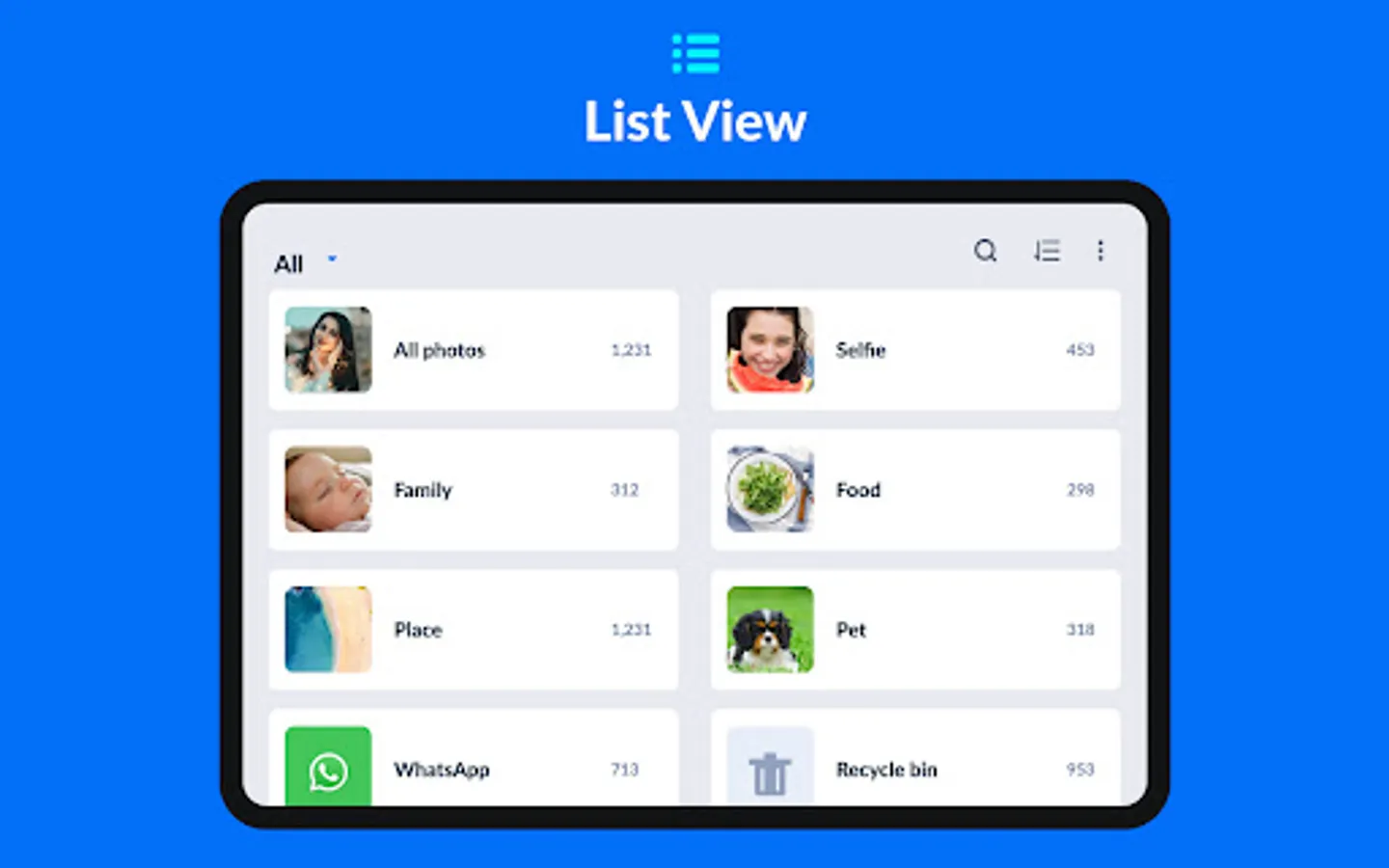 Difficult to find the photo you need in a bunch of photos? Gallery supports to sort by multiple types, filter and search photos, which helps you quickly find the specific one you want.