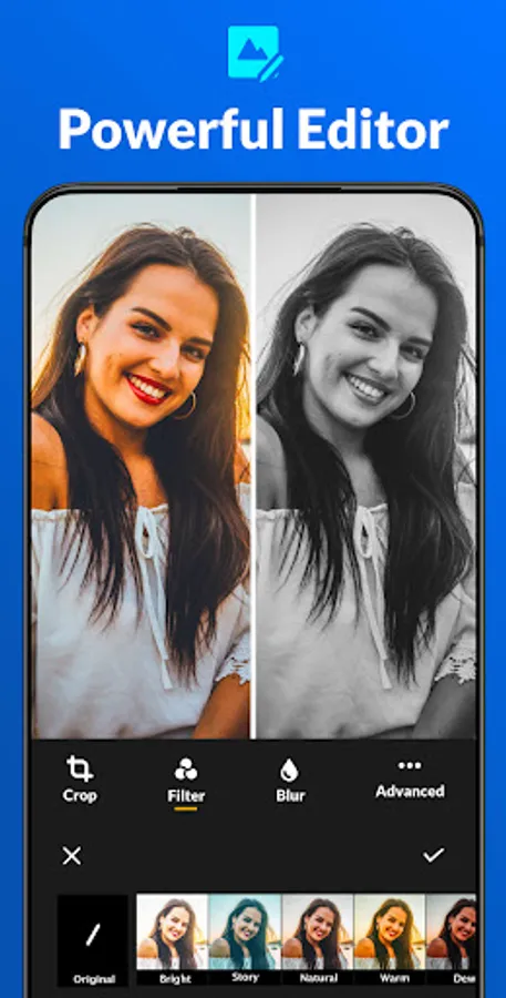 Gallery allows you to crop, rotate, resize pictures, apply filters/blur and compress videos. It can help you easily edit photos and videos.