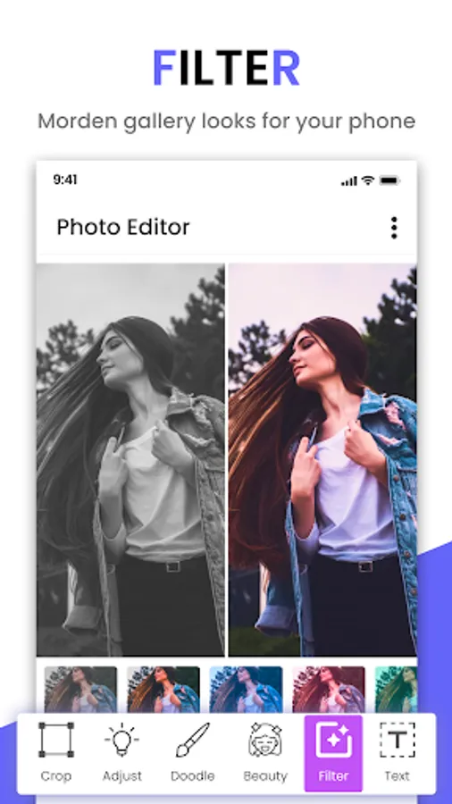 Unleash your creativity with our integrated photo editor. Elevate your photos by applying filters that enhance their beauty. Crop, blur, resize, and edit effortlessly. Create captivating photo collages and resize, rotate, or zoom high-definition images for that perfect touch.