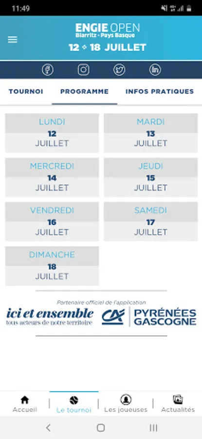 - PROGRAM: The program is now at your fingertips. The tournament starts on Monday July 12 with the qualifications and ends on Sunday July 18 with the women's singles final. Discover the day by day details of the matches and events of the ENGIE OPEN Biarritz Pays Basque.