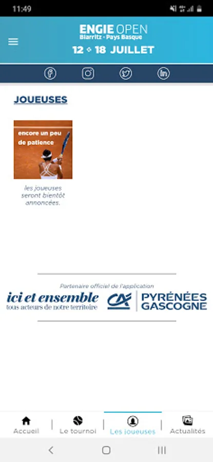 - PLAYERS: Do you want to know more about a player or simply discover the full range of players for the current edition? Nothing could be simpler now, go to the Players tab to find out everything!