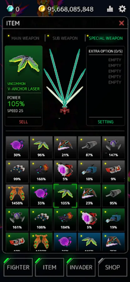 By combining weapon options, you can create an unbeatable, powerful fighter that no one can surpass.
