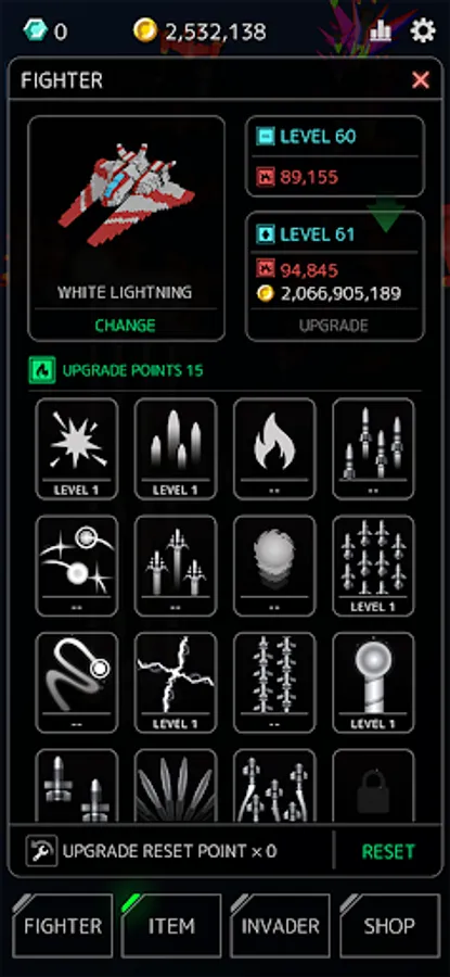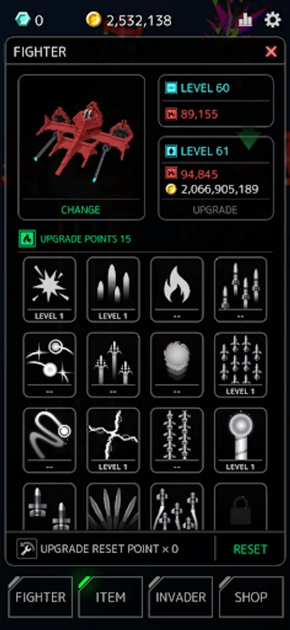 -Upgrade your fighter to obtain more skills and purchase a stronger fighter.