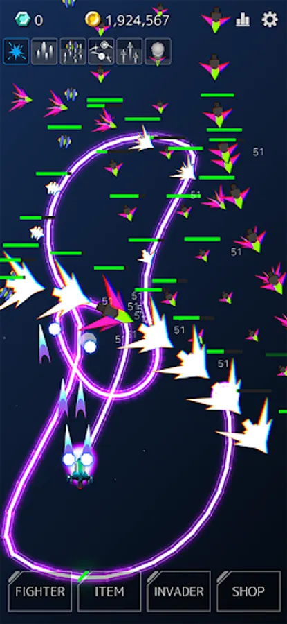 Challenge the invaders to earn rewards and make your fighter even stronger!