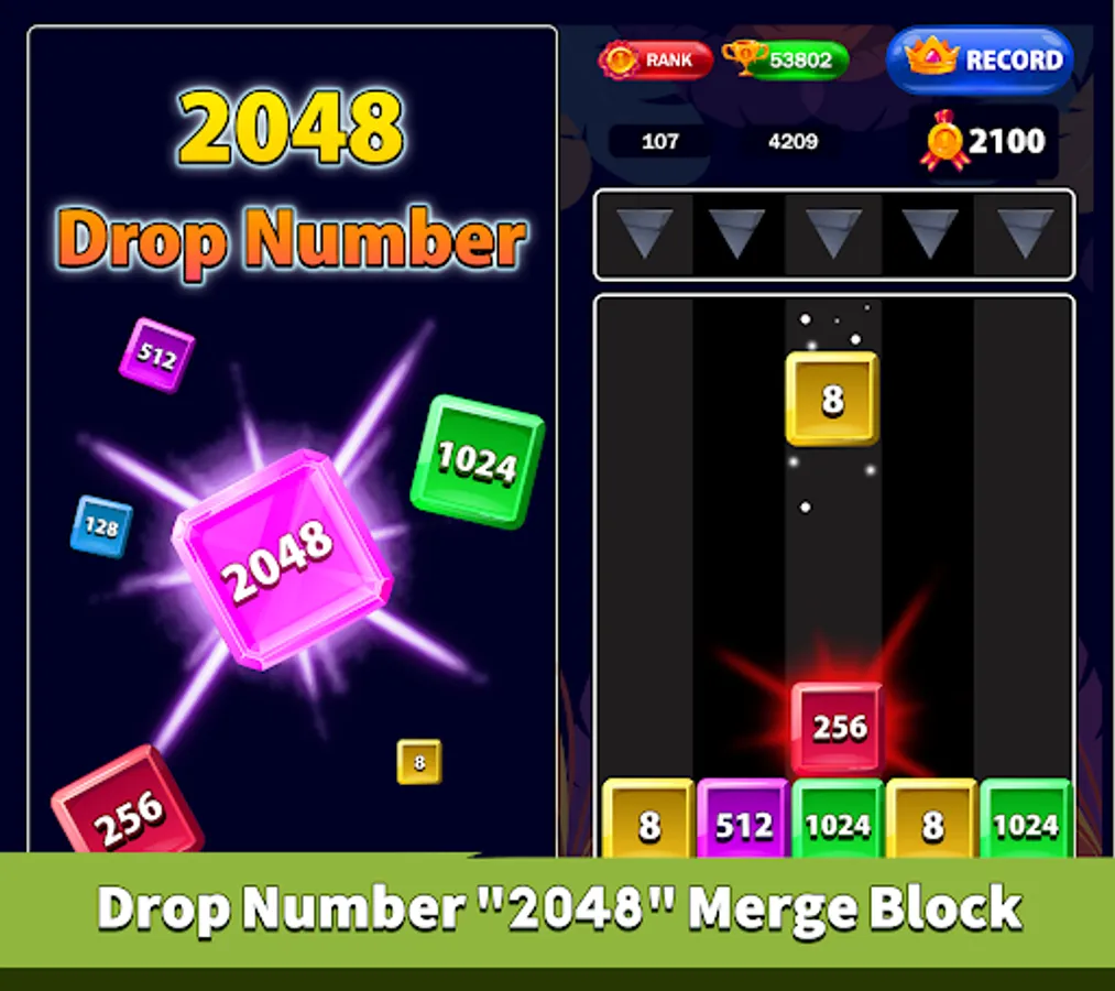 Drop Number 2048-merge Block Puzzle is an addictive relaxing merge blocks game! Drop and merge number blocks to solve this fascinating number puzzle and reach 2048!