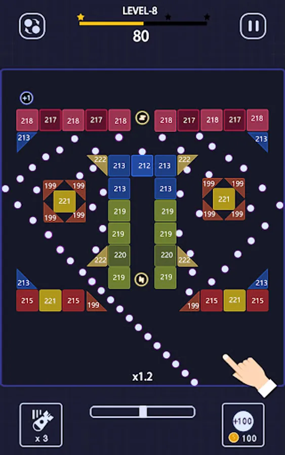 You can swipe or tap to aim and shoot the balls to blast the all bricks.