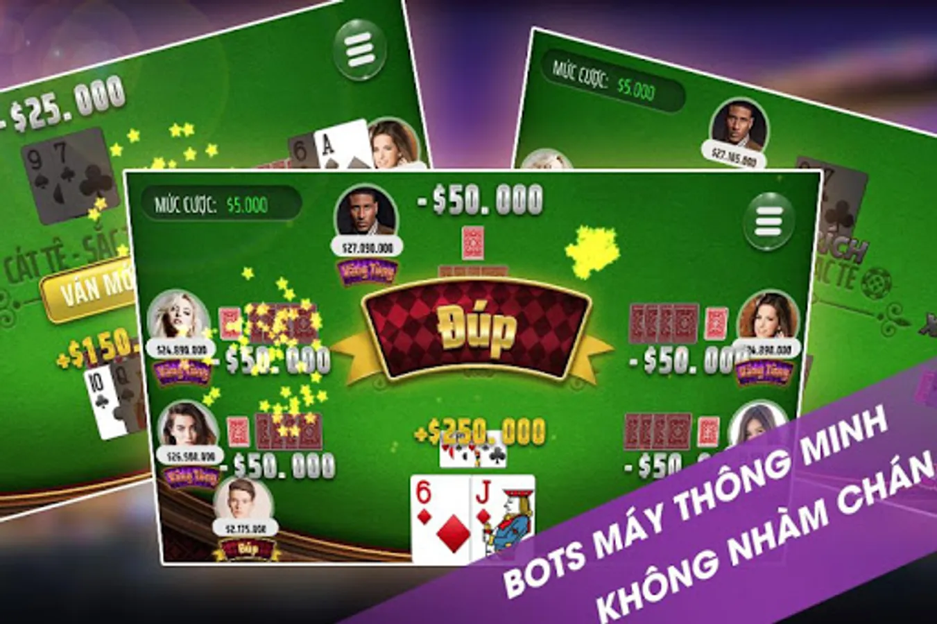 The purpose of Cat te Sac te helps players entertain, relax and improve their playing skills in playing cards. Note in the game there are no real money transactions or rewards. The experience gained, the victory in the game does not mean that the player will win in reality.