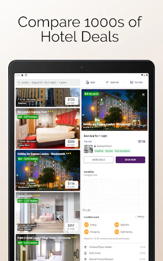 Easily manage and plan your trip with our app and find the best cheap hotels, motels, apartments, rentals, flats, B&B s near your location.