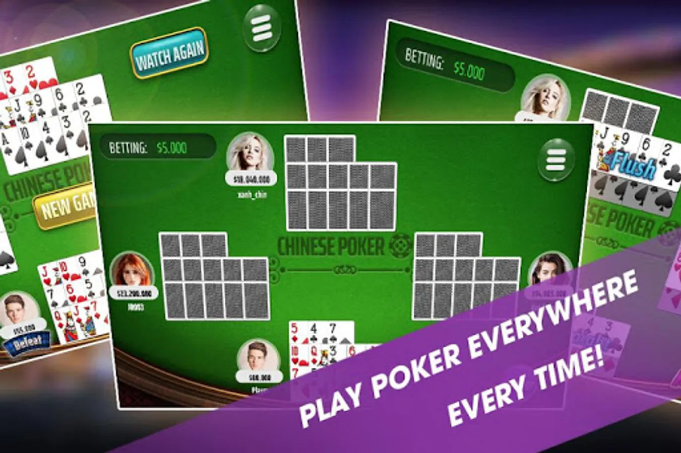 Chinese Poker also know as Pusoy or Capsa Susun.This game is one of the most popular card game in Asia - an extremely popular offline card game and is loved by many countries like Vietnam, Hong Kong, Thai, Indonesia ..