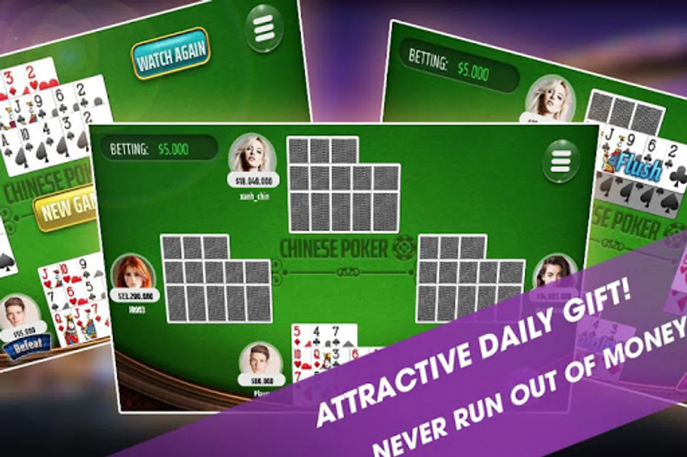 The purpose of Chinese Poker - Pusoy or Capsa Susun is to help players entertain, relax and improve their playing skills. Note in the game there are no transactions or exchange rewards with real money. The experience gained, the victory in the game does not mean that the player will win in reality.