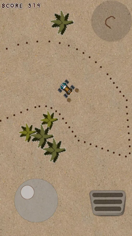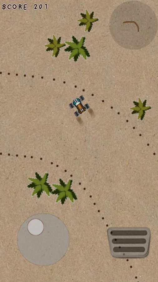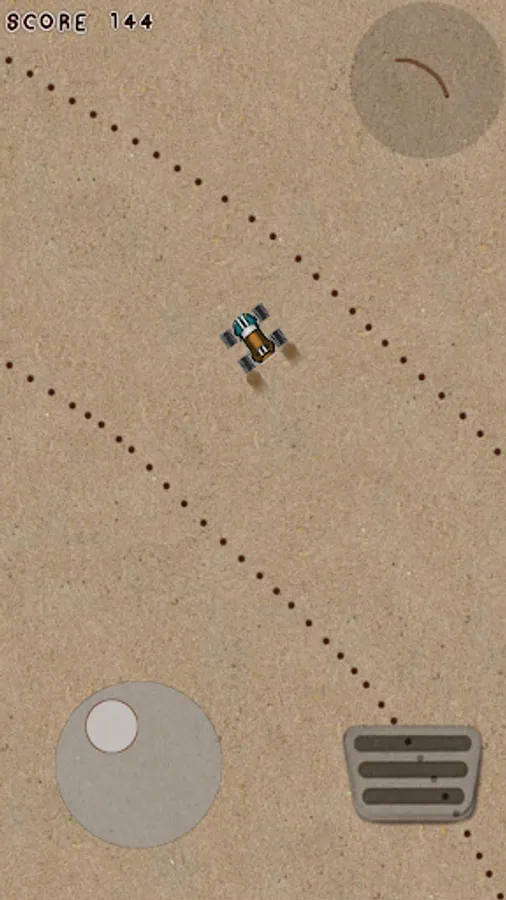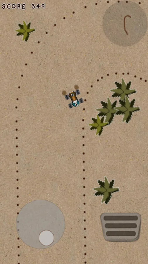 If you like high-speed race this is the game for you. Guide your car along an infinite desert in a path that is constantly changing. How much you can go without crashing into the barriers? Watch out why if you do not go at the maximum speed the path closes behind you and it's the end. Get a bit of breath occasionally passing on the fly over the speed reducer that you find along the way. Four different vehicles with different speed. To make curves you have to use the virtual steering wheel on the bottom left and you can accelerate with the button on the right. Are you ready? Go!