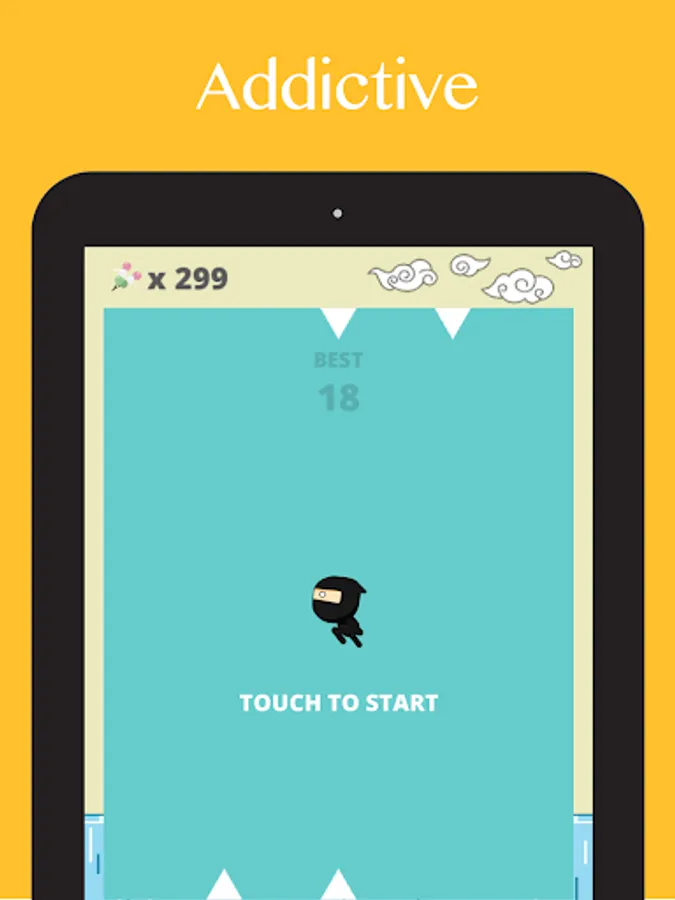 β Tap the screen to make ninja dash. If the ninja touch the wall, the ninja will turn direction. If the ninja touch the spikes, the game is over. Ninja can rebirth and revenge immediately.