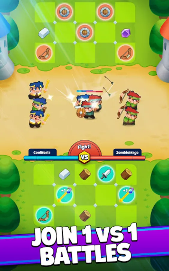 Looks like the neighbors in the red castle are up to something! 👀 You'd better be ready for battle: Merge materials 🧱 to craft weapons ⚔️ and lead your soldiers to destroy the enemy castle 🔥 in thrilling PvP battles.