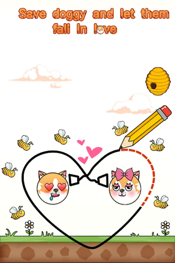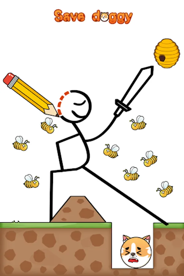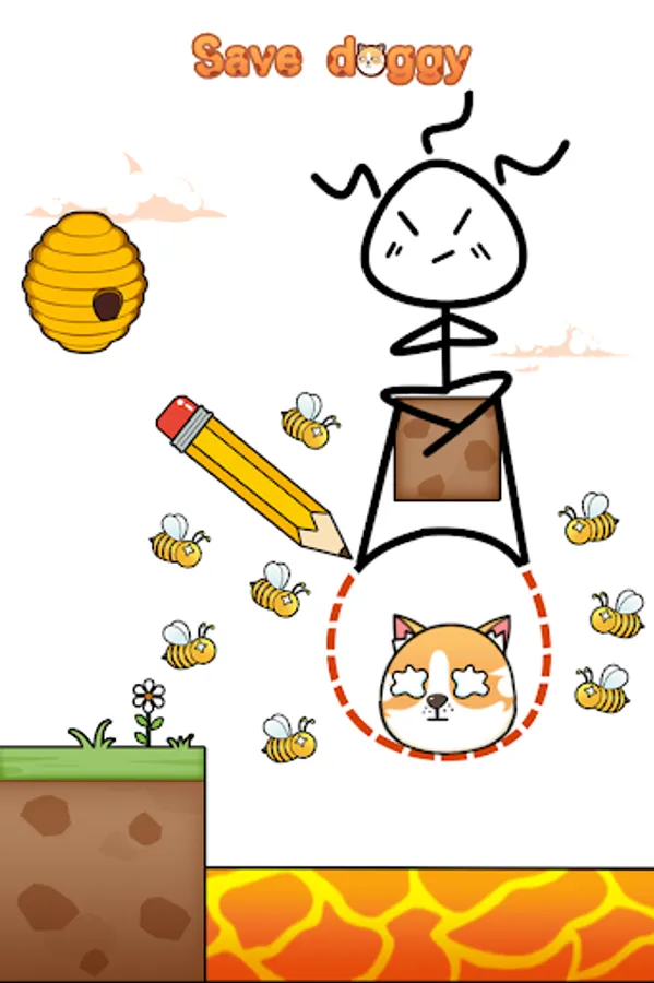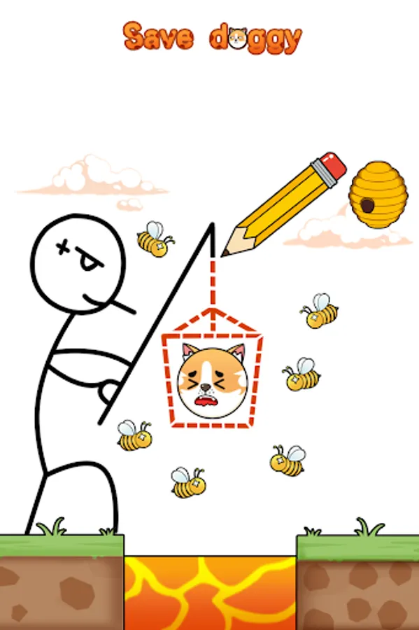 Why to save the dog? because the cute dog will be attacked by bees, you can draw line to