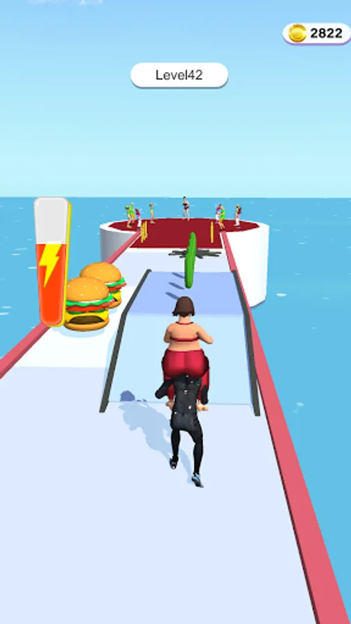 Own the runway and race to the finish line, be the fit couple, and fight the girl and end to win your man. But along the way, you'll be met by various obstacles: various food and fitness gear.