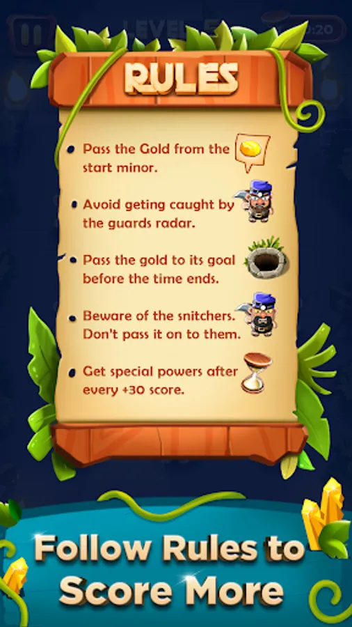 When you go ahead in the game, you will see some snitchers. Beware of the snitchers and avoid passing the gold to them. They will send it away from the trench, which can delay the gold being forwarded into the pit.