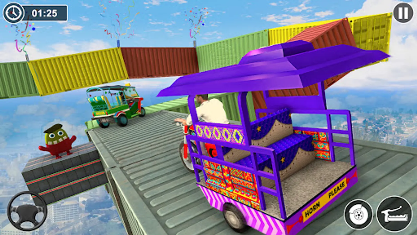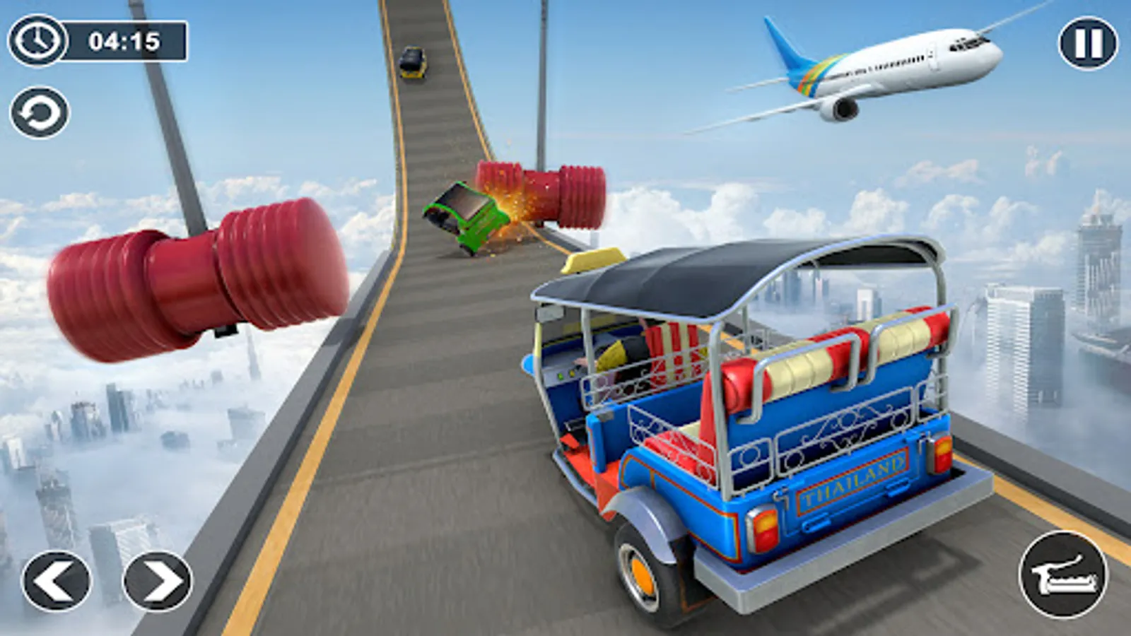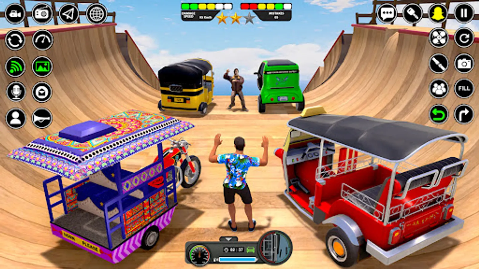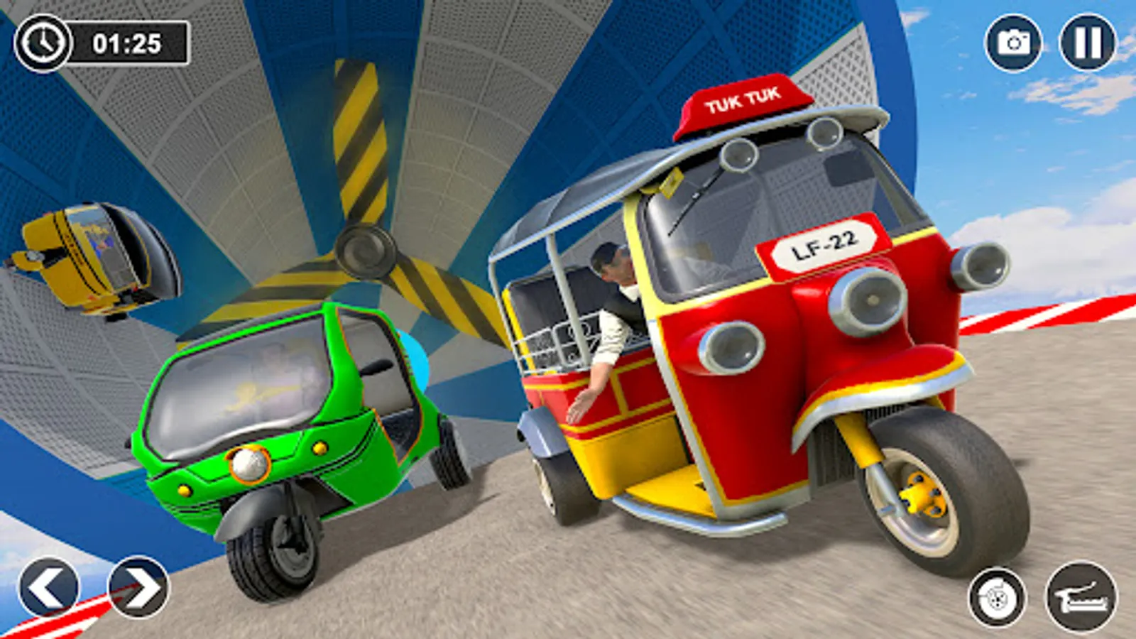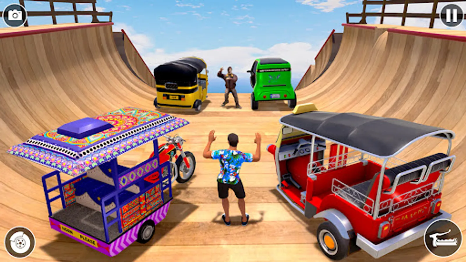 Play real rickshaw games regularly and win exciting rewards to become the best tuktuk auto riksha driver 2023. Passengers will enjoy ride and make ultimate fun in your tuk tuk auto riksha game 3D. Playing tuk tuk racing game you will become a sport legend. In modern rickshaw driving games you may perform your ๐ crazy tricks while pushing your skills to their limit. Be the champion ๐ after competing tuk tuk racing modes. Extreme stunt mode of modern rickshaw game makes you epic tuktuk auto driver. There are grand mega ramps to race with your companions. Set time โฑ๏ธ and route for multiplayer racing in auto rickshaw games. Customize tuk-tuk auto-rickshaw as per your likings. Colorful wheel of tuktuk game is attractive.