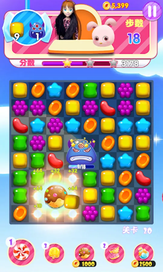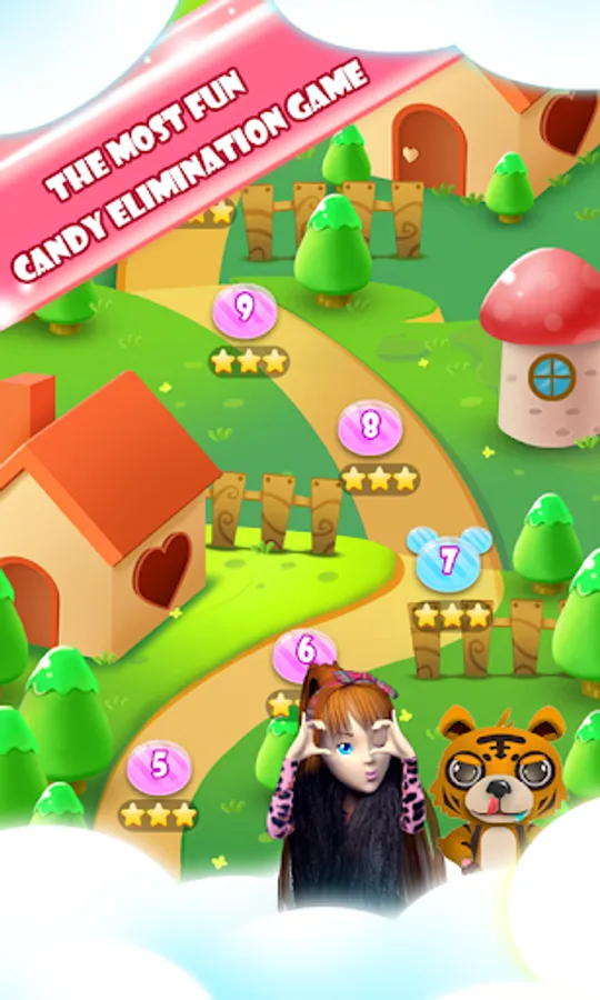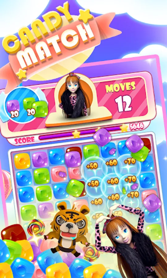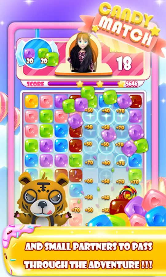 The cute girl came to the candy world, and new adventures are waiting for you and cute girls. Get ready for addictive candy game with nice puzzles. Switch and match candies in this puzzle adventure to progress to the next level in hope of achieving that sweet feeling! Start your journey today and discover many exciting and delicious worlds and levels. Pass levels in the land of sugar and collect great prizes with the preety girl.
