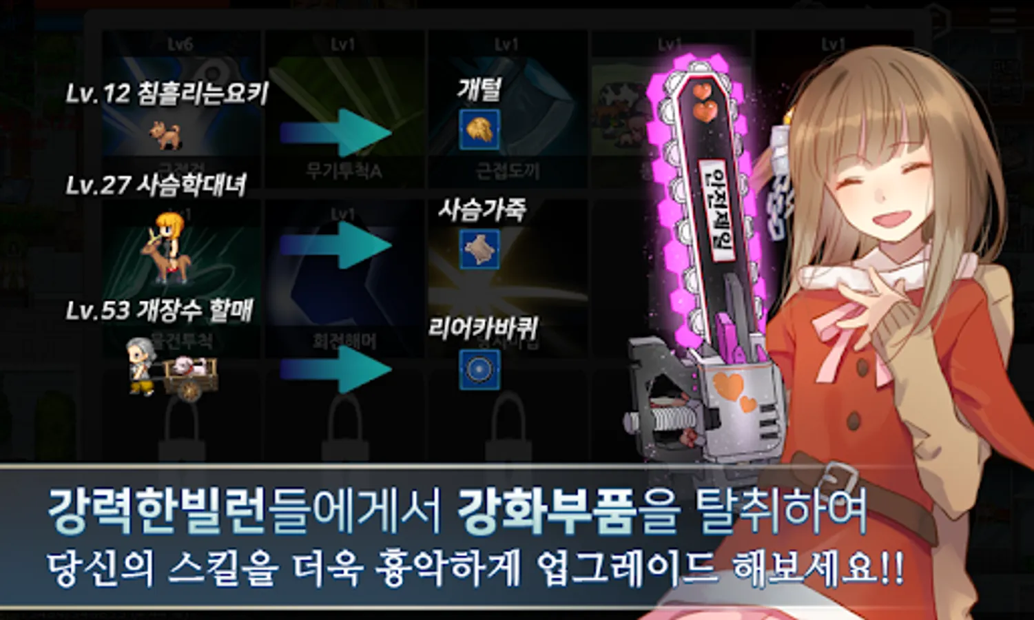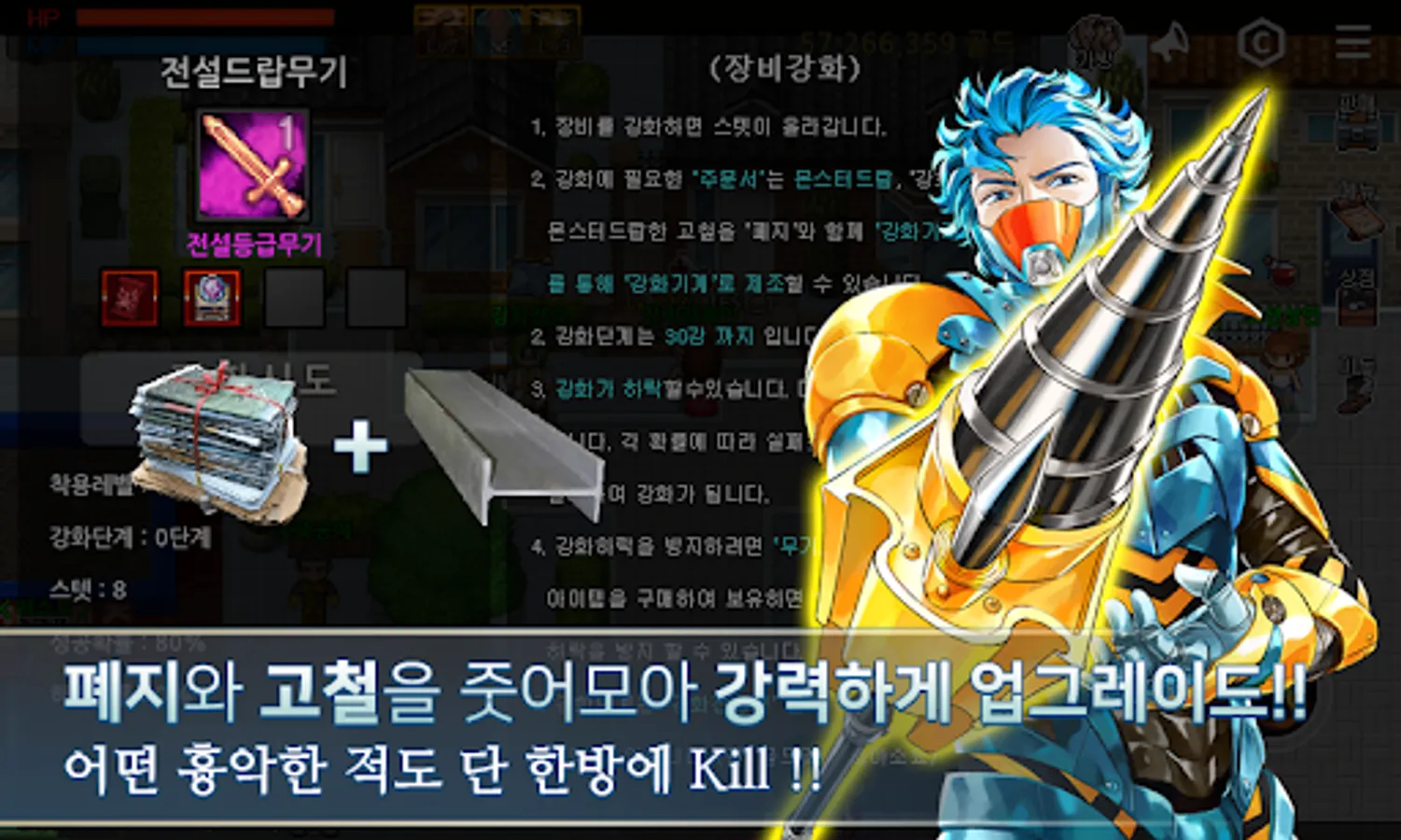 Gather waste paper, collect scrap metal, and make powerful killing weapons such as the powerful cast iron padda and paru, and the Japanese sword, Framberg, and Hongryeon's bulpatda that jumped far beyond them.