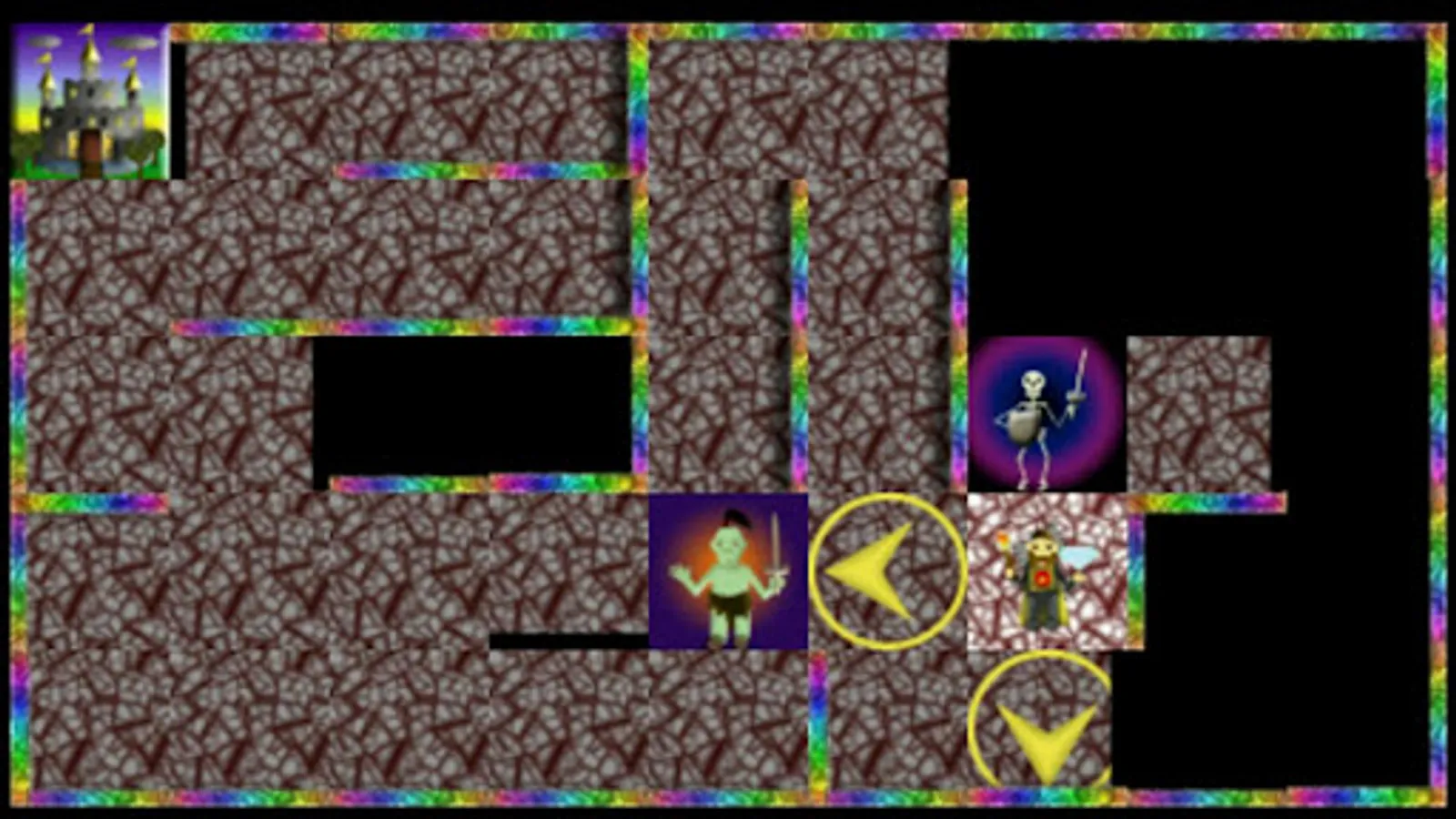 The game is simple. 1 or 2 players start at their castle and move using the arrows on the touch screen. The objective is to find the diamond in each level and return it to your castle.