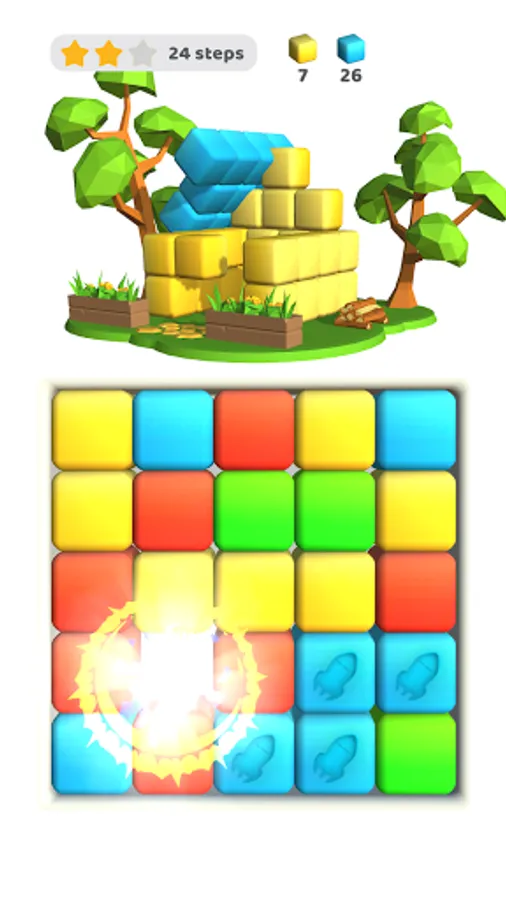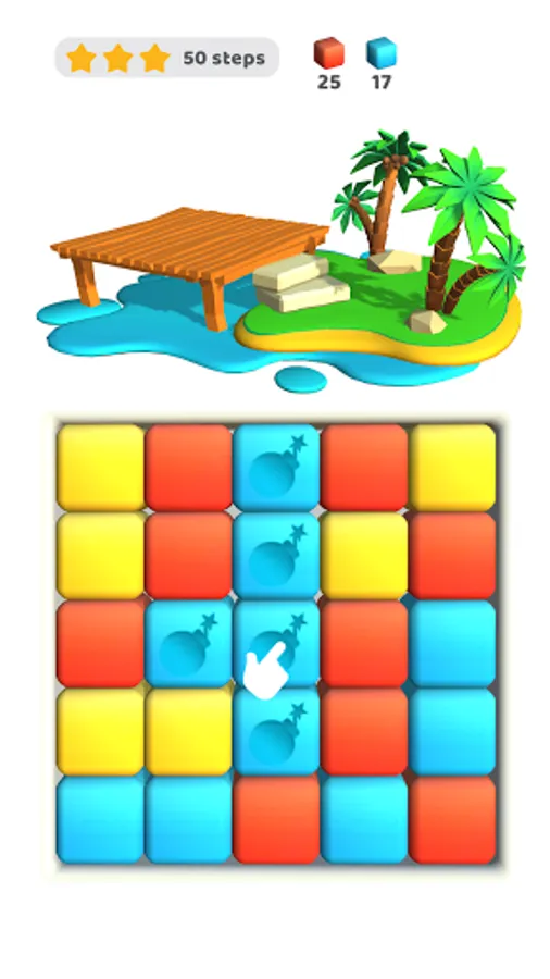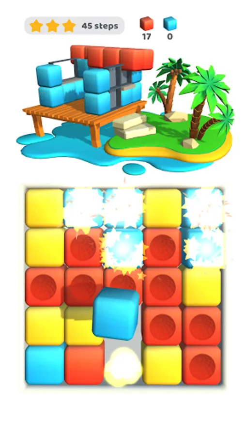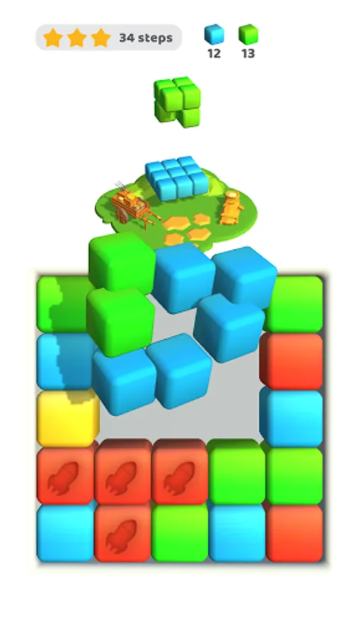 Match cubes of the same color to build a building. Build up the island with buildings and unlock new levels!