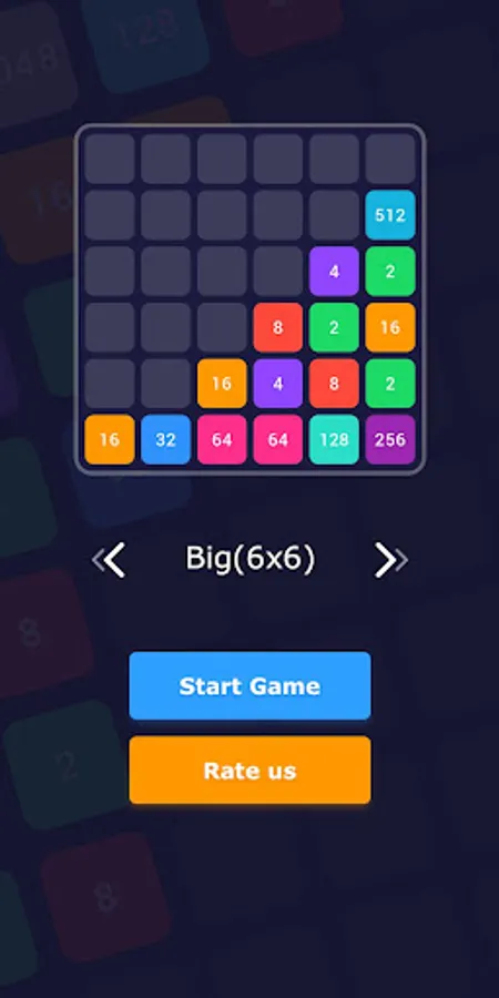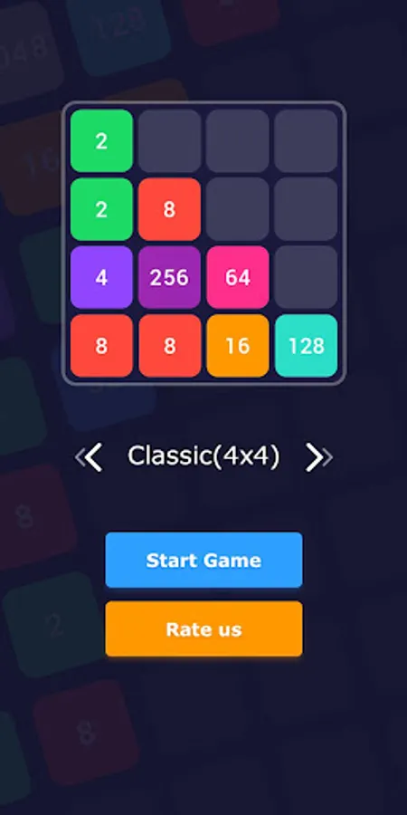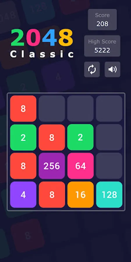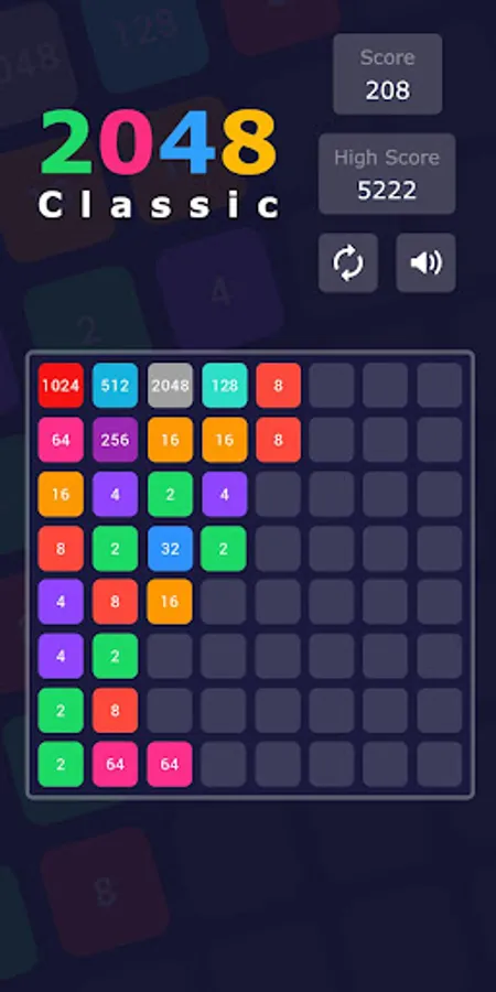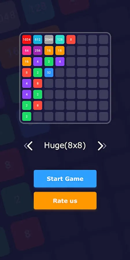 Slide the tiles and merge them to reach 2048 tile. When two tiles with the same number touch, they merge into one. Start with 2 and reach 16, 32, 128, 512, 1024 and finally 2048. When 2048 tile is created, the player wins!