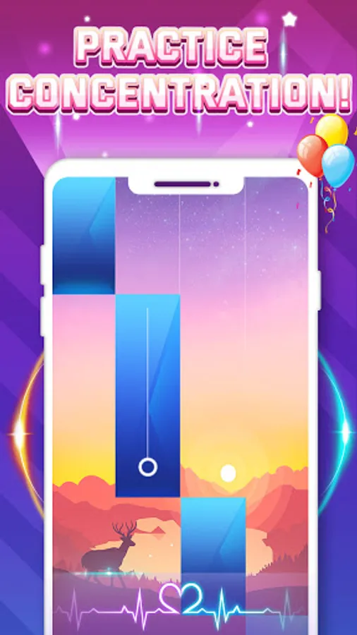 Tap the tiles in the beautiful classical piano music melody. You can feel the thrill and excitement in the ever-accelerating rhythm. It has a minimal picture and perfect sound quality. You can feel the charm of the piano melody here!