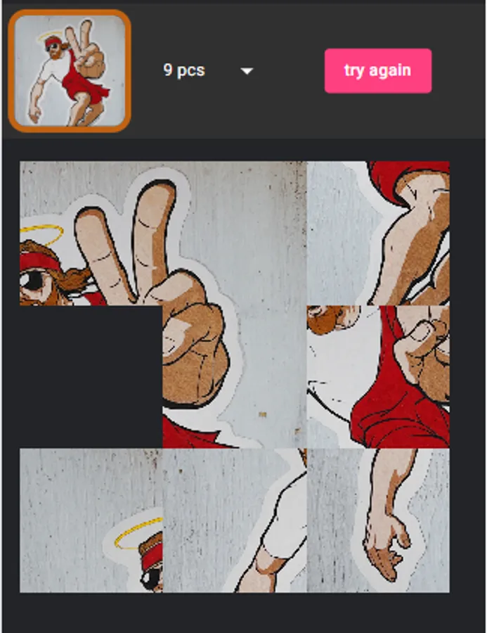 You have to slide the tiles to reassemble a picture, by touching the block you want to move.