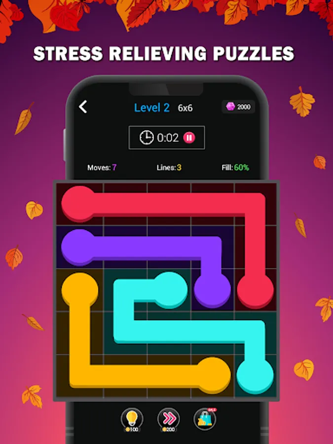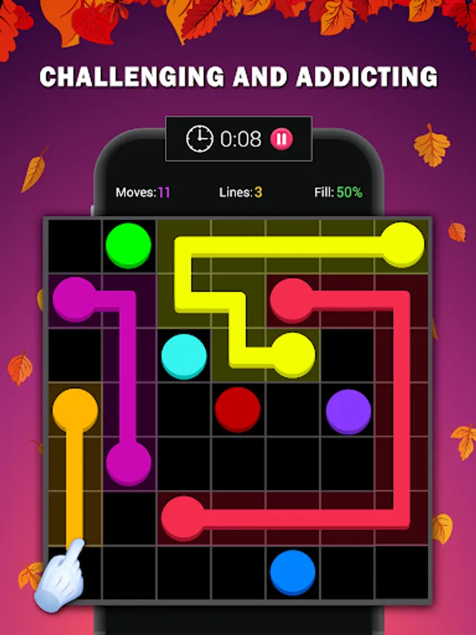 The game features a simple and intuitive interface that makes it easy to jump right in and start playing. You simply tap and drag to create lines that connect the colored dots. The game also includes helpful hints and power-ups to aid you in completing each level. Plus, with no time limit, you can take as much time as you need to solve each puzzle.