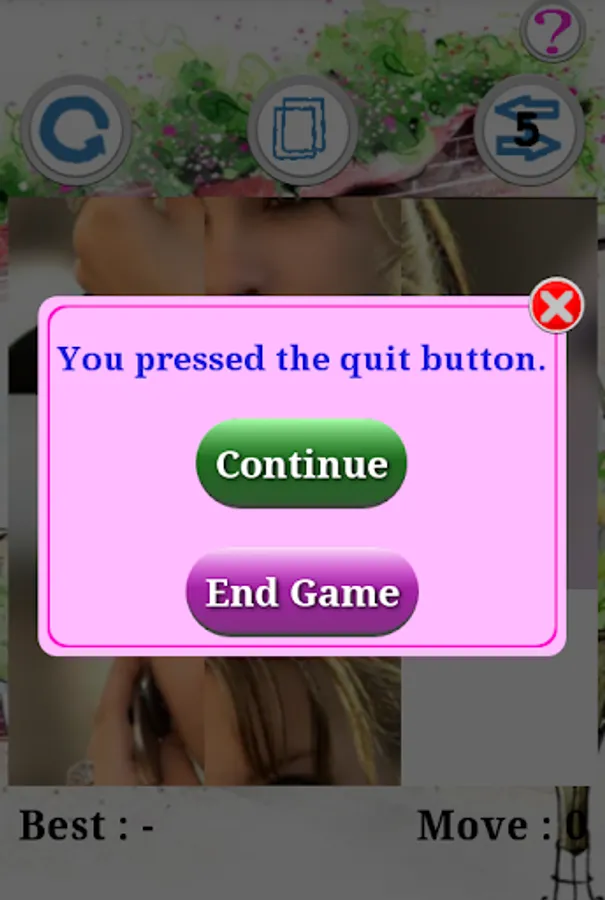 Player has move to pieces of the picture to the right order to generate original picture. It's a challenge for player to complete the game.!