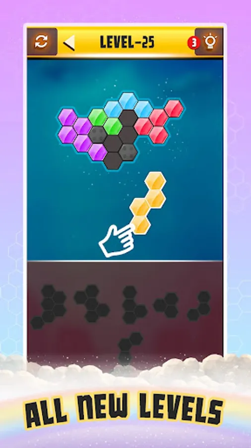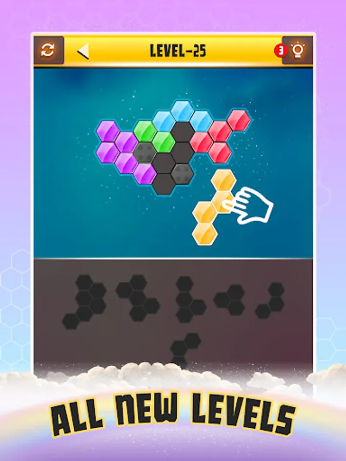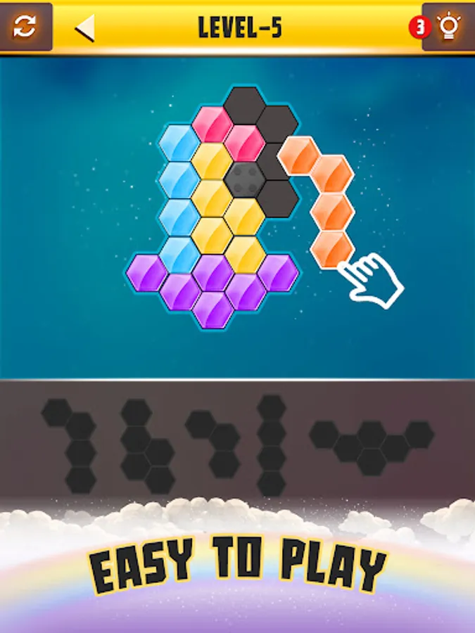 Hexa block chain cube brings you hints to assist you in completing the level. The hints will help to solve these cube block easier and make jigsaw puzzles more fun to tackle. Utilize the hints wisely!