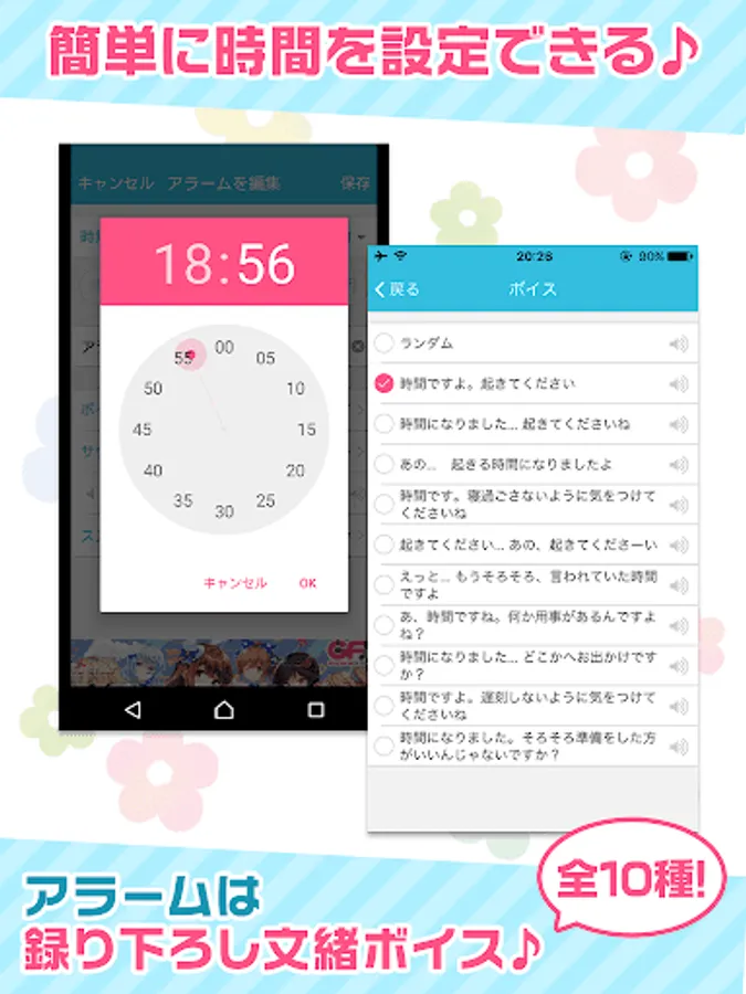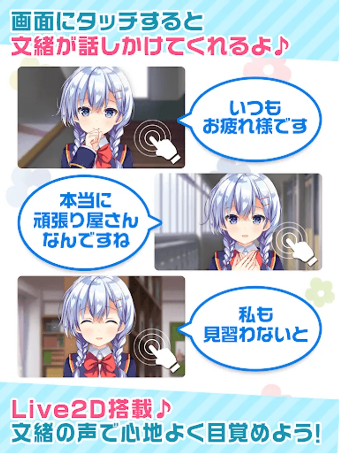 Fumio Murakami, a girlfriend (provisional) character, is an alarm app that wakes you up at a set time.