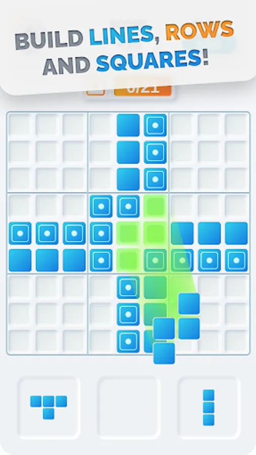 Place blocks in the 9x9 board and fill rows, columns or squares to clear them from the game. Complete the levels by clearing the marked blocks. Play for as long as you can to beat your high score!