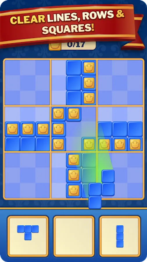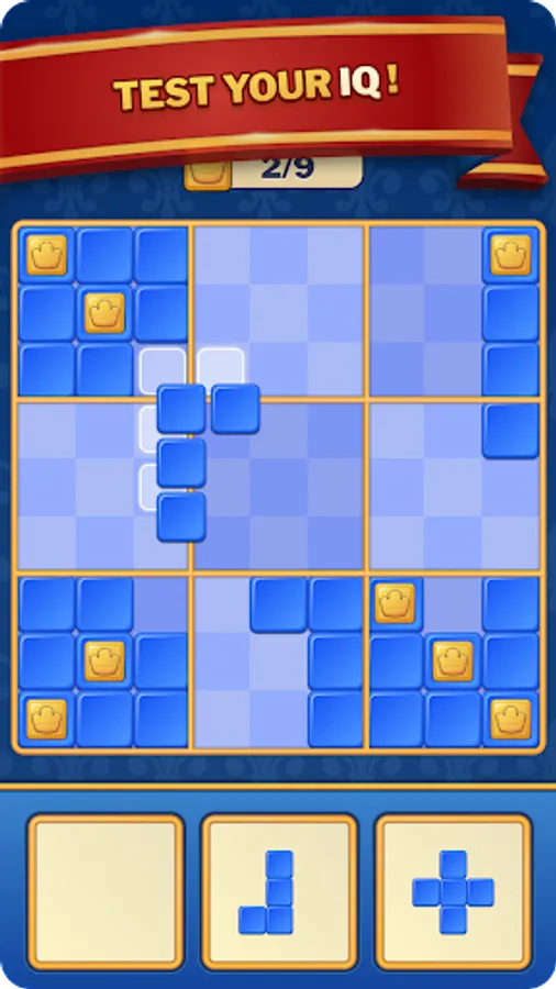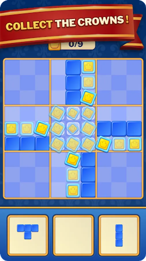 Place blocks in the 9x9 board and fill rows, columns or squares to clear them from the game. Complete the levels by collecting the Crowns. Play for as long as you can to beat your high score!