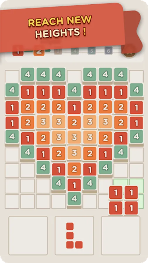 Place blocks in the 9x9 board, unlock new layers and continue stacking on top. Be careful! If you run out of space you will lose!