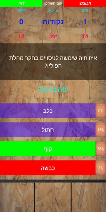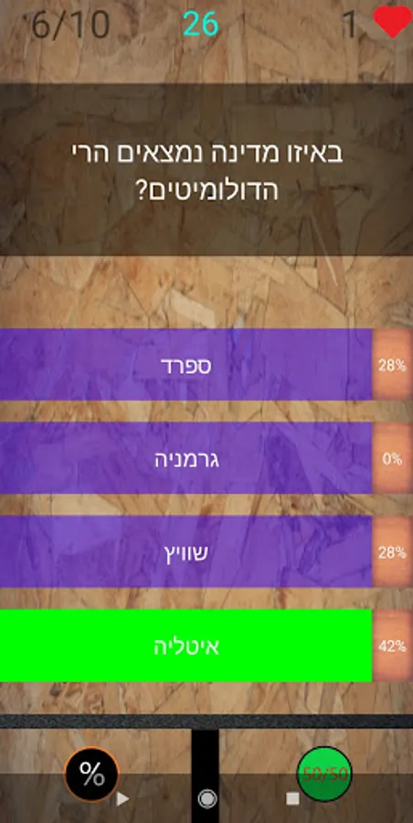 - At the end of the question, see the percentages according to the players' answers in the game.