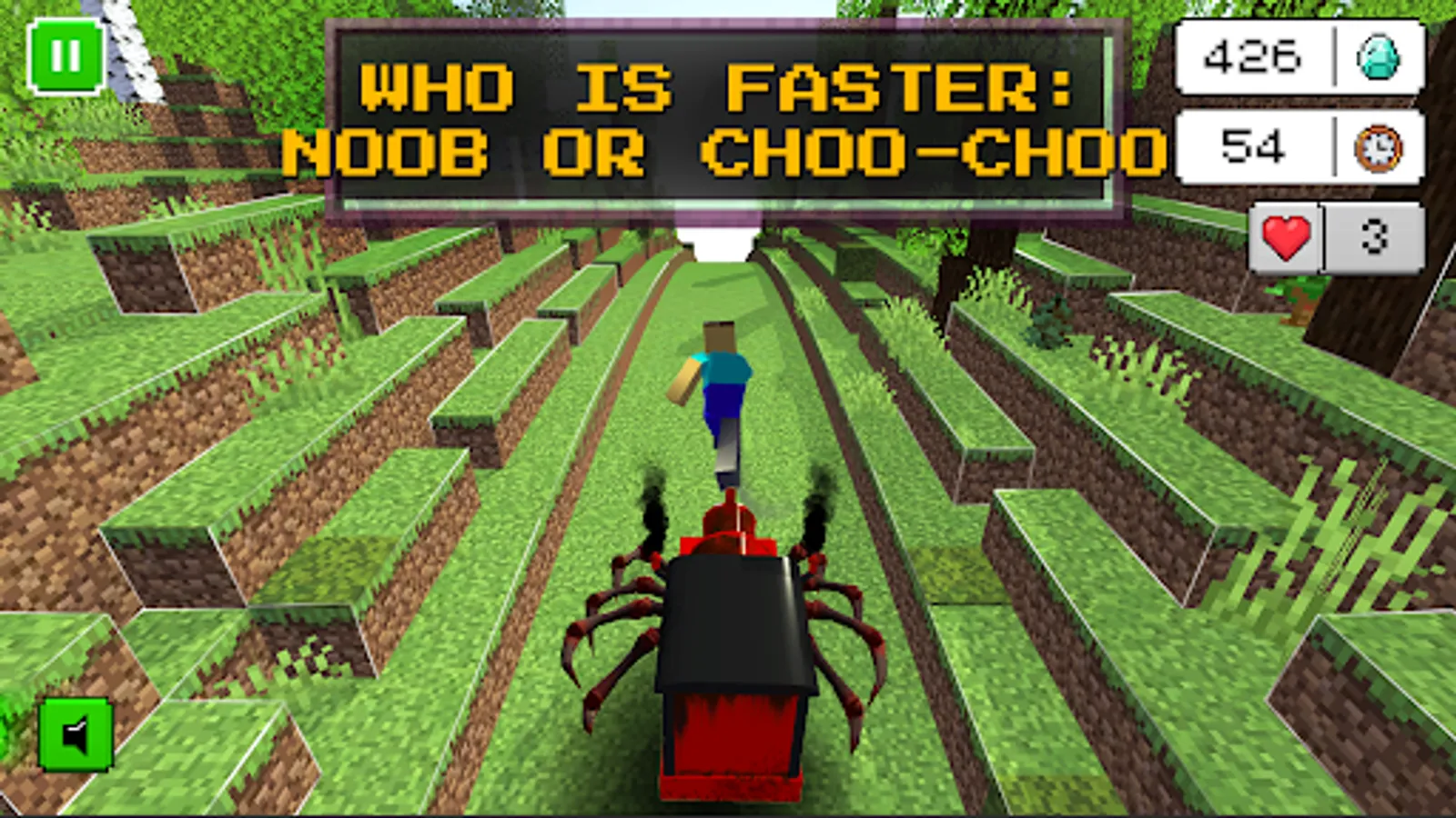 This is the latest addition to the popular genre of runner games (like surfers or temple), and it's taking the world by storm! In this process, players assume the role of a Noob who must navigate through the treacherous block system while being pursued by a terrifying choo choo yellow spider.