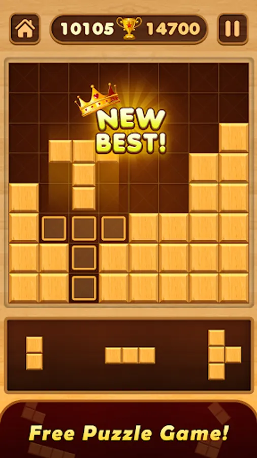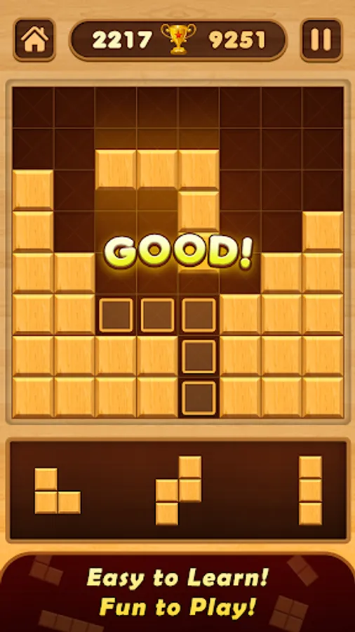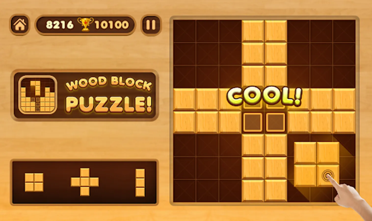 Wood Block Puzzle its style wood block puzzle and easy to play Place the pieces into board.fill in a vertical or horizontal line, it will disappear, freeing up space for new pieces.