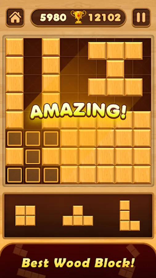 it great features wood block puzzle.and game will be over when no more space in board, puzzle game no time limit during game play!