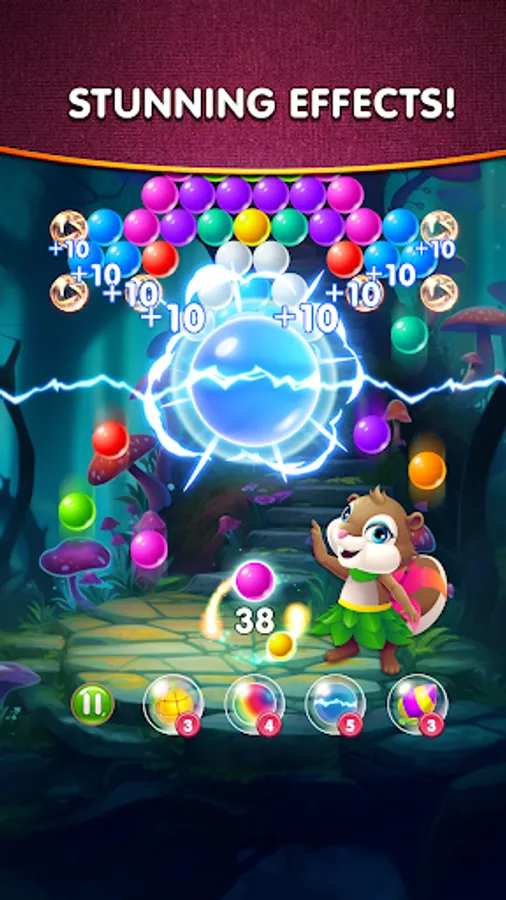 Exciting Levels and Challenges: Start your bubble adventure through a magic forest, and unlock new levels and chests. Every level brings an unforgettable twist.